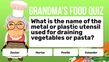 If you can answer "What is the name of the metal or plastic utensil used for draining vegetables or past.." and maybe even "A sauce made from which fruit is often served with pork?" there is a good chance that you're going to beat the average score of 6/10 in this trivia quiz