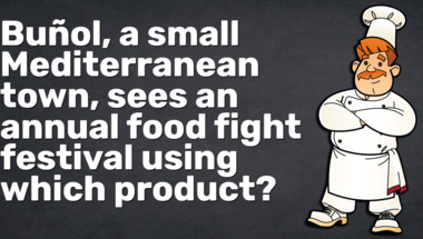 Look forward to questions like "Buñol, a small Mediterranean town, sees an annual food fight festival using which pr.." and "Which type of food poisoning can be caught from undercooked chicken?"